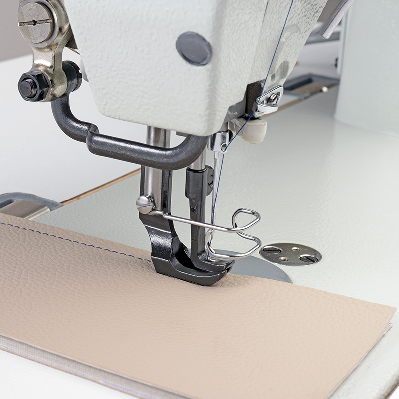 Stębnówka TYPICAL GC0617Dma potrójny transport (ząbki, stopka, igła), który w połączeniu z wyższym skokiem igielnicy, który w tym modelu wynosi aż 37mm, doskonale radzi sobie z szyciem technicznym.